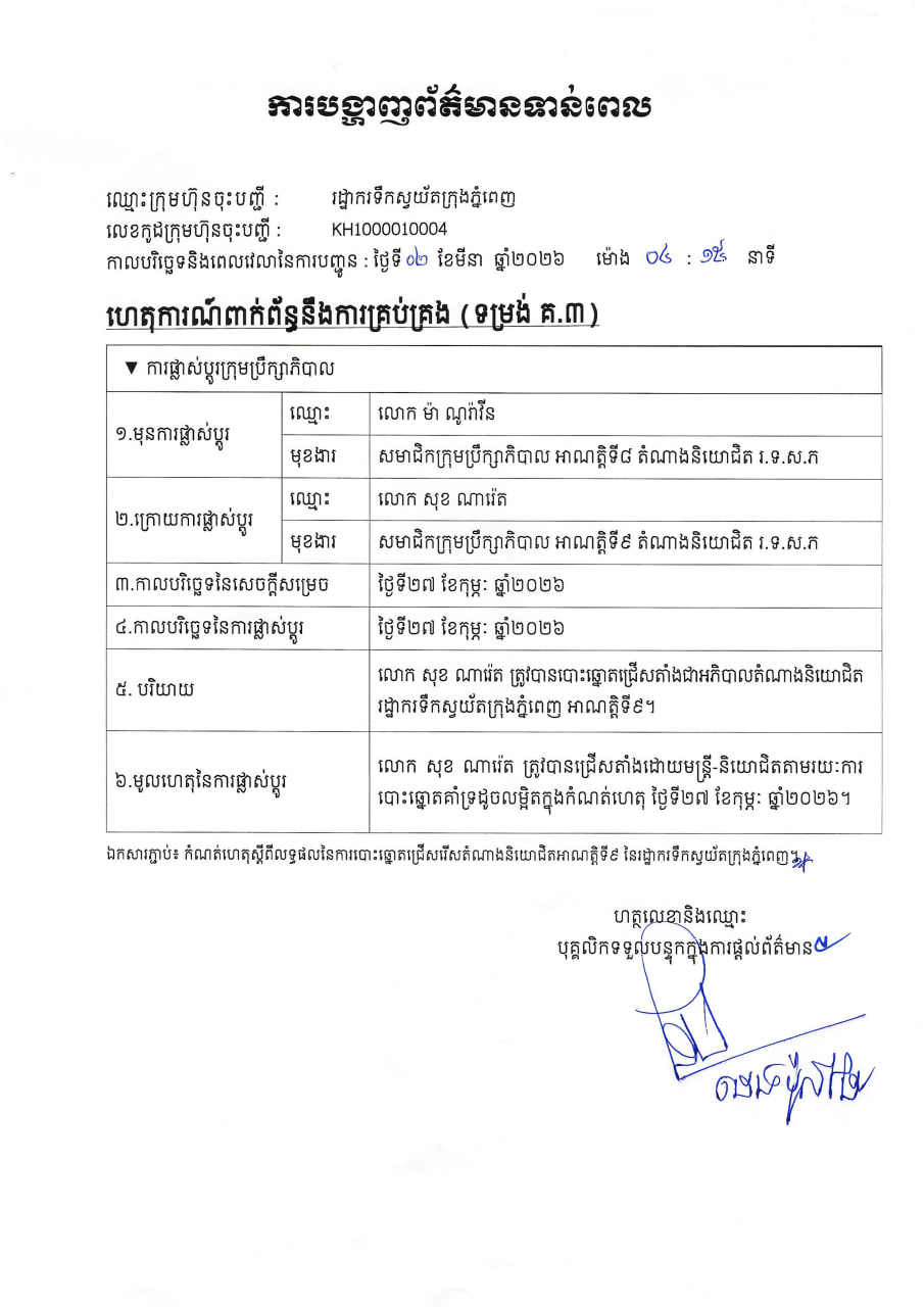 ការផ្លាស់ប្តូរក្រុមប្រឹក្សាភិបាលរដ្ឋាករទឹកស្វយ័តក្រុងភ្នំពេញ