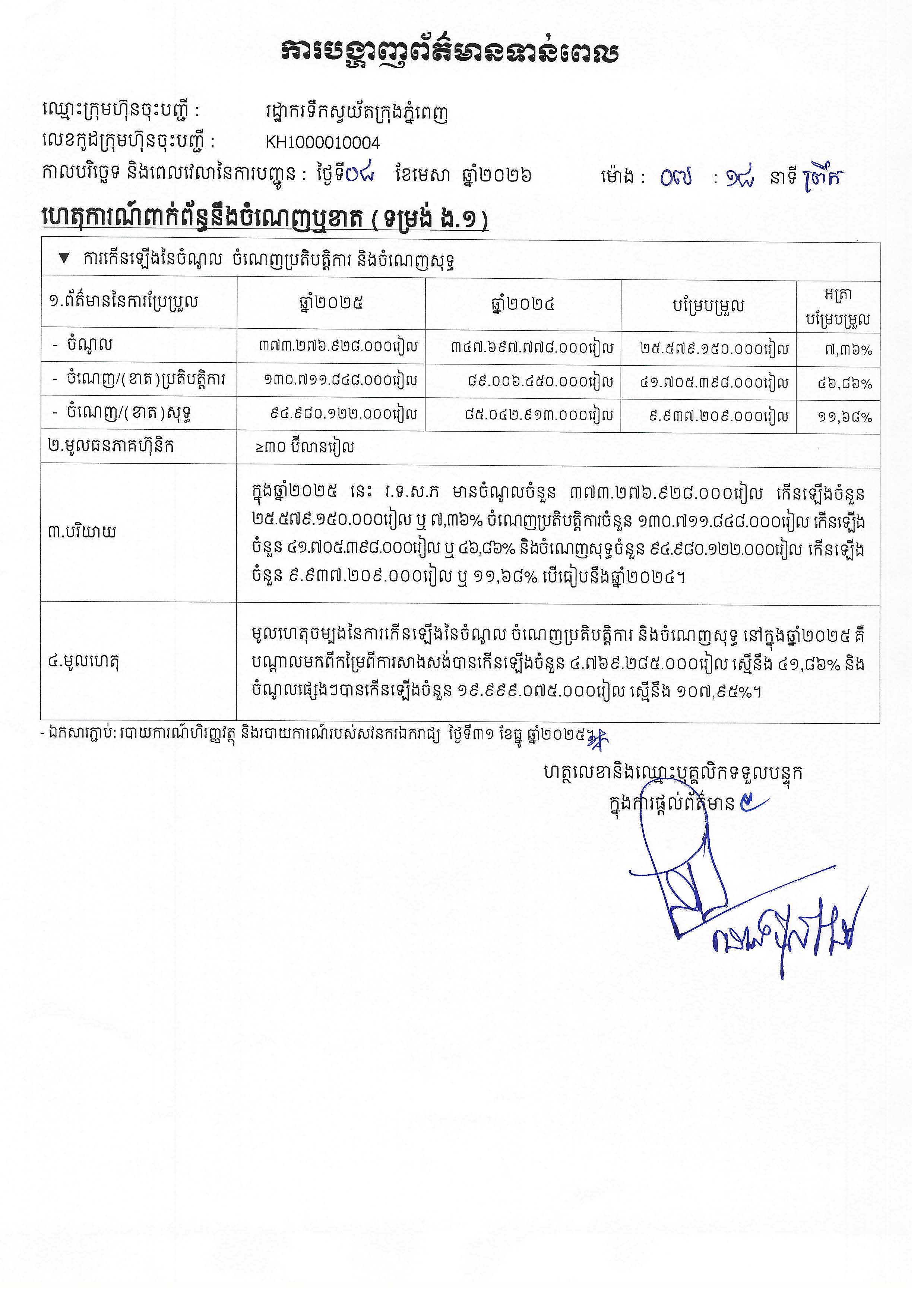 ក្នុងឆ្នាំ២០២៥ នេះ រ.ទ.ស.ភ មានចំណូលចំនួន ៣៧៣.២៧៦.៩២៨.០០០រៀល កើនឡើងចំនួន ២៥.៥៧៩.១៥០.០០០រៀល ឬ ៧,៣៦% ចំណេញប្រតិបត្តិការចំនួន ១៣០.៧១១.៨៤៨.០០០រៀល កើនឡើងចំនួន ៤១.៧០៥.៣៩៨.០០០រៀល ឬ ៤៦,៨៦% និងចំណេញសុទ្ធចំនួន ៩៤.៩៨០.១២២.០០០រៀល កើនឡើងចំនួន ៩.៩៣៧.២០៩.០០០រៀល ឬ ១១,៦៨% បើធៀបនឹងឆ្នាំ២០២៤។